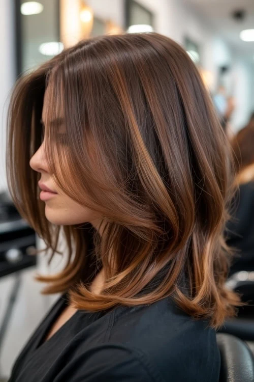 This soft balayage highlights warmer tones, giving your hair a golden glow against darker roots.